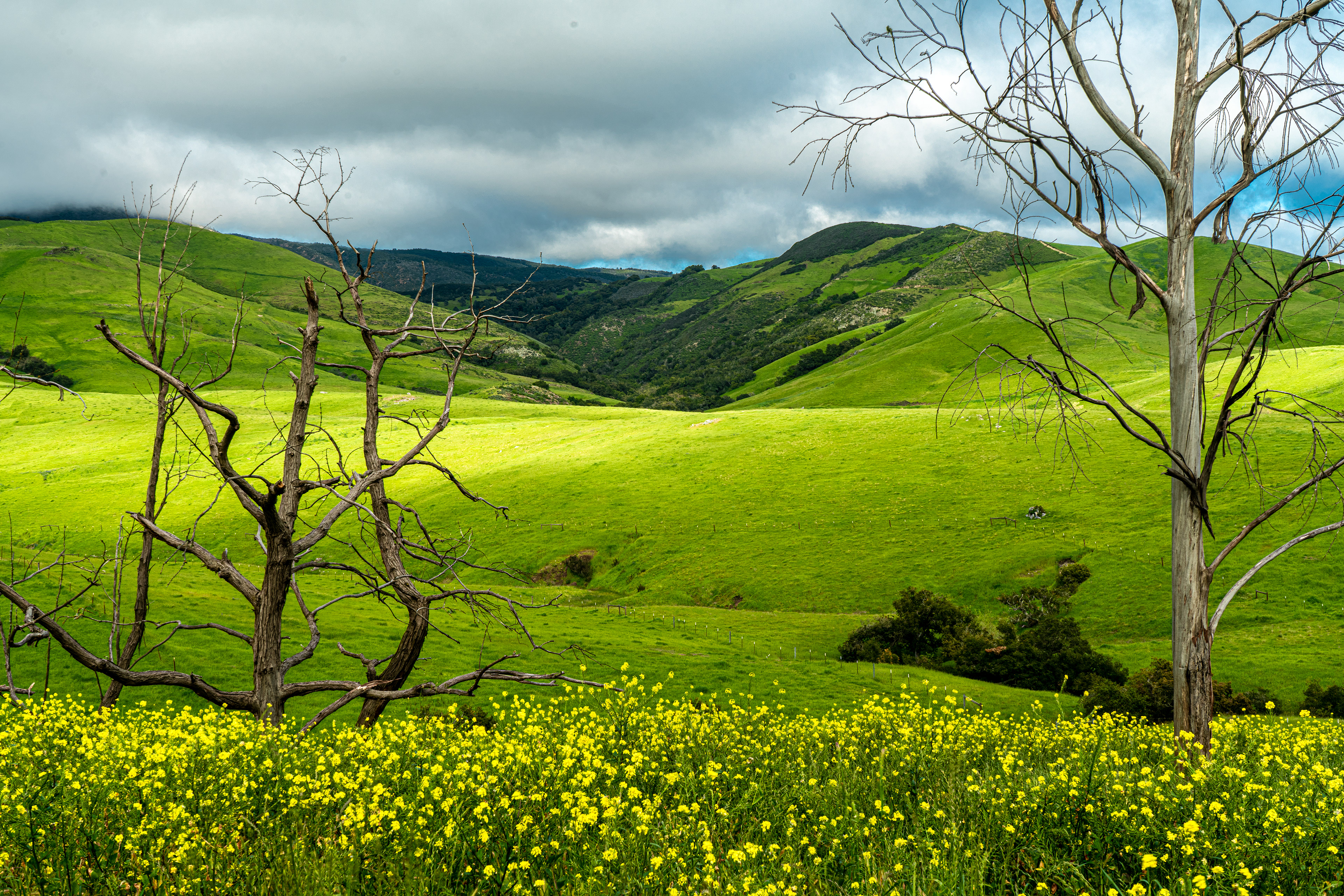 The grass in SLO county seems to glow in the sunshine, aided by smatterings of yellow flowers. This "golden green" is something I seek out every spring.